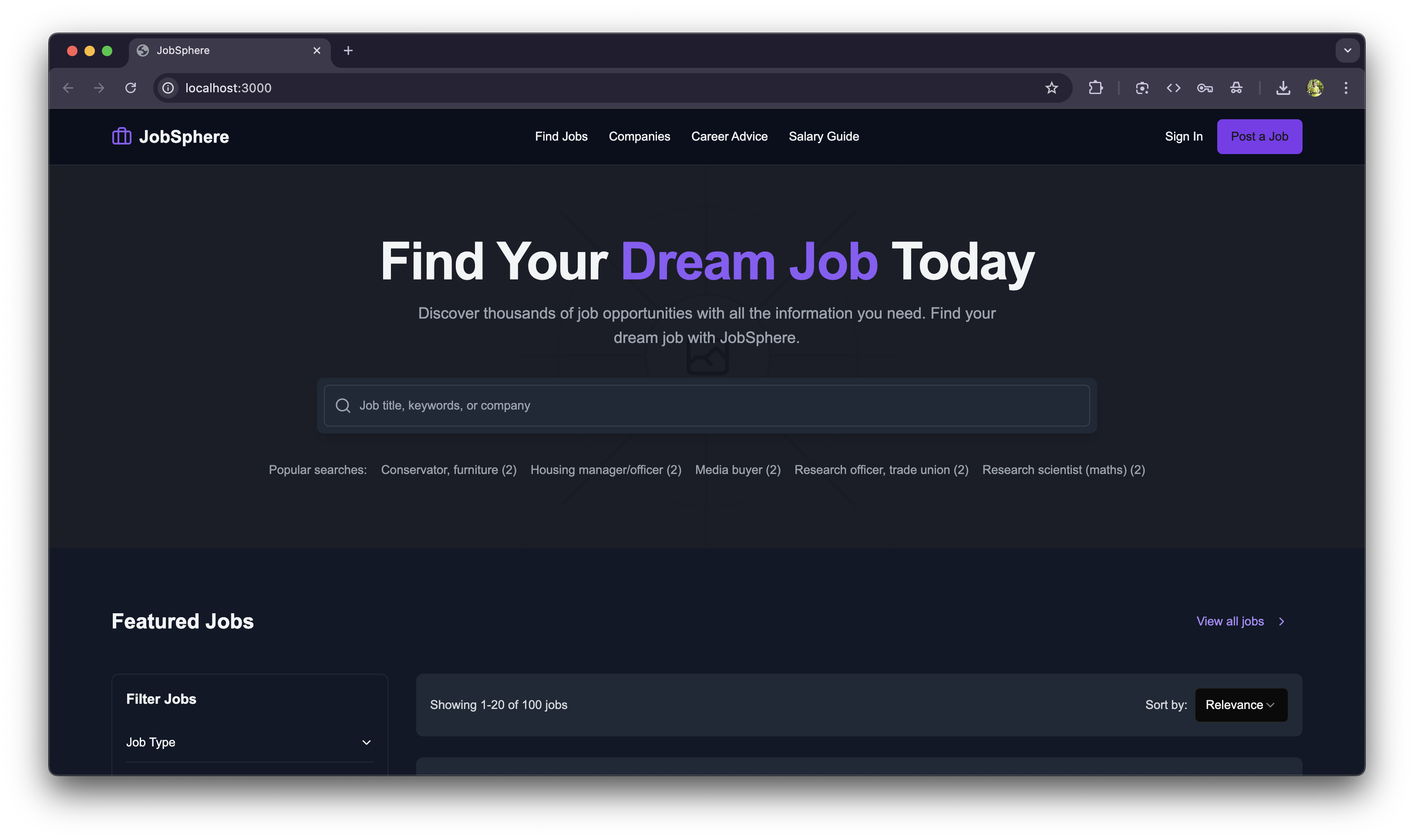 JobSphere addresses the increasing need for responsive and dynamic job search platforms. Unlike static job boards, JobSphere leverages Elasticsearch and modern frontend frameworks to provide real-time search experiences and rich filtering options, helping users find jobs that match their preferences more efficiently.