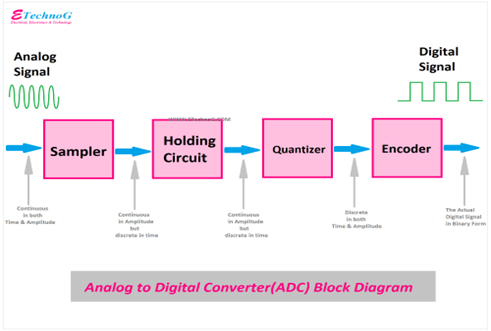 These convert continuous real time signals into digital signals which computing systems can understand. First, the analog signal is sampled at the Nyquist rate (Sampling frequency is twice the maximum available frequency). Then, after sampling, the signal’s amplitude is quantised, converting the continuous stream of amplitude values into discrete values. Finally, the signal is passed through an encoder and the final output is generated.Some examples of ADCs are the following; Function generators, Motor control systems, audio playback and many more.