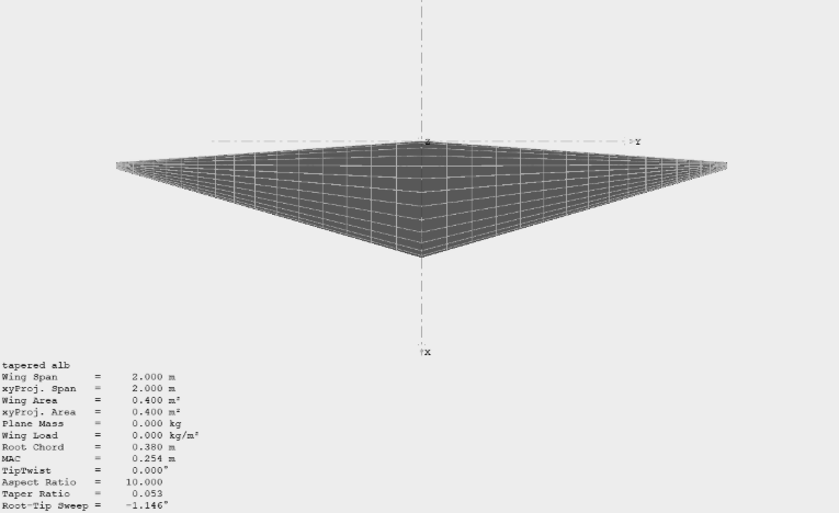 Reference Values: Wing Area = 0.404 m^2 (BSLD), 0.760 m^2 (Rectangular), 0.4 m^2 (Tapered)