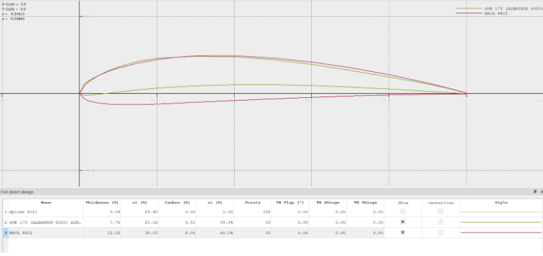 GOE 173 (Albatross 6020) and NACA 4412 airfoils were used to perform the following simulations. GOE 173 is closely associated with the Albatross wing’s airfoil, hence, it was chosen for further simulations. Coordinates of the GOE 173 and NACA 4412 airfoil were plotted, and wing geometries were modelled using CAD software such as SolidWorks/Fusion360.